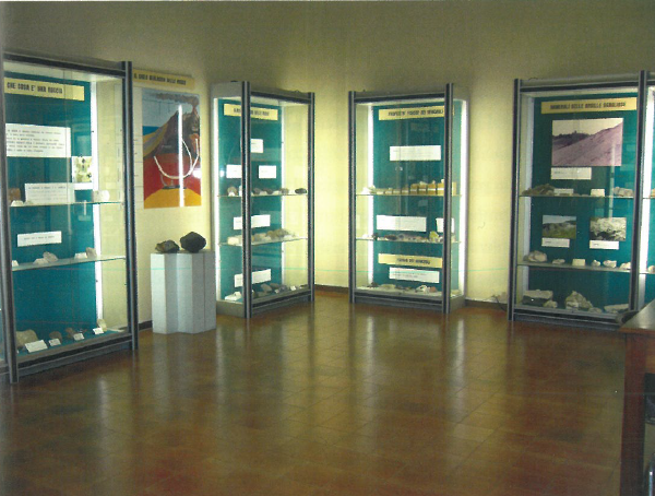 Le vetrine che aprono il percorso geo-mineralogico espongono numerose rocce sia magmatiche sia sedimentarie che metamorfiche e vari campioni di minerali. Di seguito viene dato ampio spazio all’esposizione di minerali provenienti dall’area compresa tra il fiume Reno e il fiume Secchia come quarzi, calcite, barite e pirite. Completano il tutto una ricca collezione di septarie e minerali delle ofioliti. Il percorso si chiude con una piccola sezione riguardante rocce e minerali utilizzati dall’uomo nella vita quotidiana o nelle attività produttive del territorio.