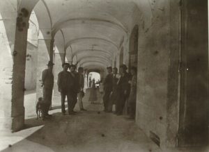 La via Barozzi era detta contrada del Pozzo, per la presenza del pozzo comunale, o contrada degli Ebrei, che qui abitavano, e successivamente contrada dell’Oro. La via Belloj, detta all’epoca vicolo del Buco, metteva in comunicazione attraverso un passaggio coperto ? questa contrada con il piazzale Boncompagni e la Rocca. La via Bernardoni era la via della Scuola o del Ginnasio, e  ospitava una rivendita di tabacco e acquavite.